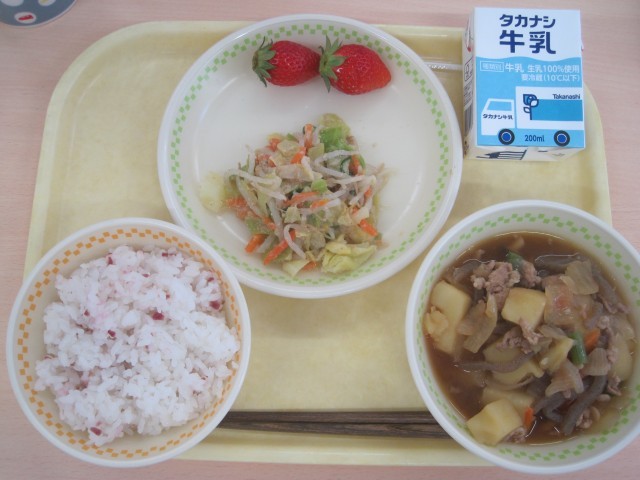 年が明けていちごの価格が落ち着いてきたので、ようやく給食で登場しました。これから春にかけて、何度か登場すると思います。