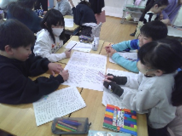 授業では、子どもたちが文章を読み解き、グループで決めたテーマに沿って「ここが大事だ!」と思う箇所に線を引いていきました。