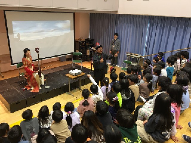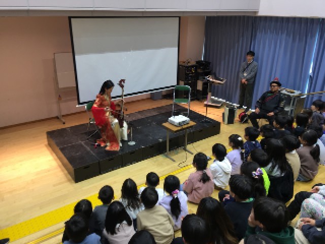 国語で学習している「スーホの白い馬」に関連して、モンゴルから演奏者の方をお招きしました。