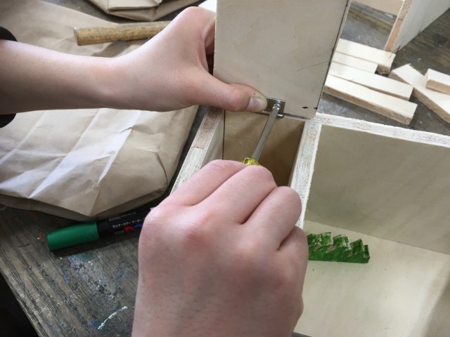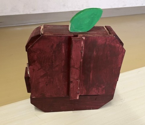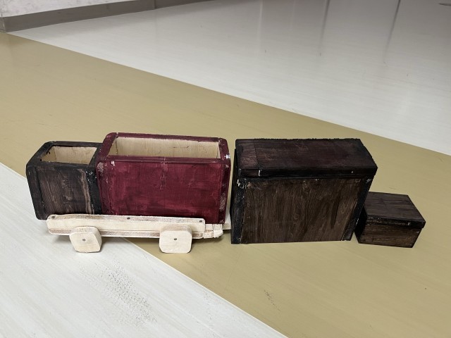 生活に役立つ木製品の制作に取り組みました。 テーマは「これまでの学びの活用」です。のこぎりやかなづちといった今まで学んできた道具や楽しく作る心や粘り強さなど図工の時間で培った力を活かしました。家のリビングに馴染む色にしたい」「教科書がぴったり入るサイズにしよう」など、実際に使う場面を想像して設計しました。