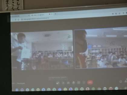 3年生 外国語 クロムブックを使って2教室同時授業