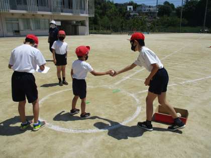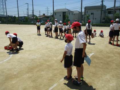 6年生は1年生のソフトボール投げのお手伝いをしていました。