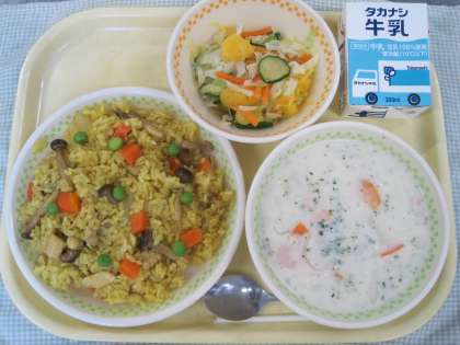 カレーピラフ 米粉のクリームスープ フレンチサラダ