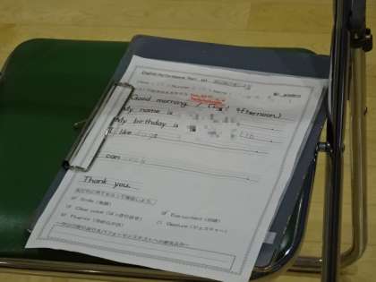 今回は英語の専科教員とALTの先生の前で、自己紹介をしていました。そのあとにその内容についてALTの先生から質問があり、それに答えます。緊張も見えますが、台本を作って一生懸命練習した真剣な様子や気持ちのこもった様子が見られる素敵な空間です。 評価の視点は