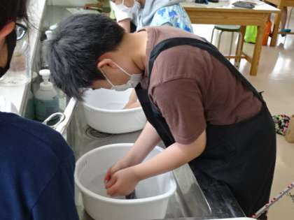みんな真剣に洗っていますが、くつ下のもう片方はどうするのでしょう?