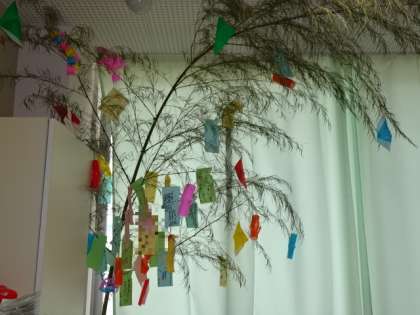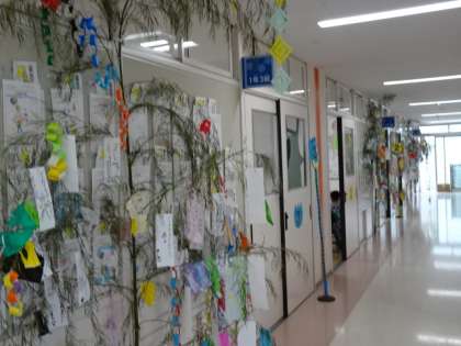1、2年生 七夕飾り 公開日 2021/07/06 更新日 2021/07/06 鶴一日記 地域の岩子山千手院の方から毎年笹竹を頂いています。今年は2年生は各教室に、1年生は廊下に七夕の飾りつけをした笹竹を立てました。コロナの終息をはじめ将来の夢など願う子供たちの声が織姫様や彦星様に届くといいなあと思います。 全学年