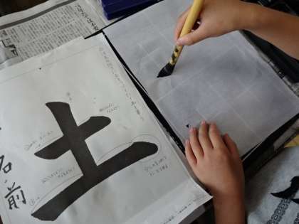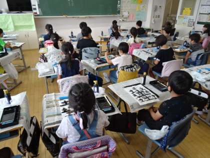 3年生 習字 公開日 2021/07/07 更新日 2021/07/07 鶴一日記 3年生が習字の学習をしていました。一回目は墨や筆に慣れる学習をしました。二回目はよこ画、そして今日の三回目はたて画の学習で『土』という字を書きました。筆の置き方に注意して書き始めます。上手に書けましたね。 全学年