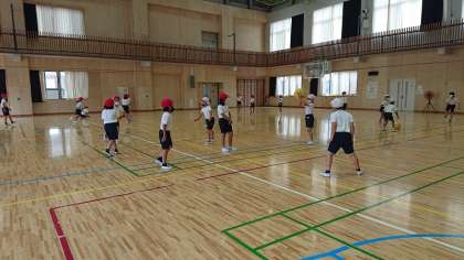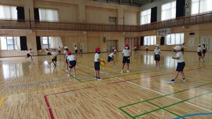 3年生 体育 プレルボール 公開日 2021/07/13 更新日 2021/07/13 鶴一日記 ネット型ゲームの学習で3年生はプレルボールをしていました。プレルボールは、バレーボールのルールに似ていますが、床にバウンドさせてからパスや攻撃をするという決まりがあります。最初は打つことも苦労していましたが、壁打ちなどの練習を経て、パスを回したり、敵がいないところを狙って速いボールを打ったりすることができるようになってきました。 全学年
