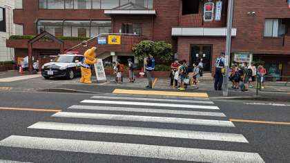 ゼルビー君、ピーポ君現る 公開日 2021/09/02 更新日 2021/09/02 鶴一日記 9月1日 通学路にも久しぶりに子供たちが戻ってきました。交通安全を呼びかかけるためにゼルビー君とピーポ君が駆けつけてくれました。 全学年