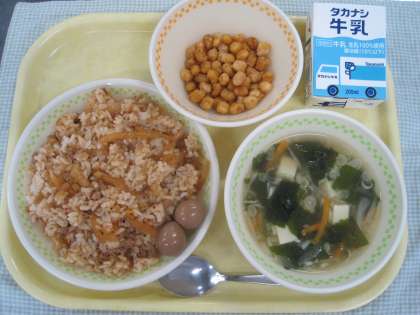 9月8日の給食 公開日 2021/09/08 更新日 2021/09/08 ☆給食☆ キムチたくわんご飯 わかめスープ うずらの卵のしょうゆ煮 スパイシービーンズ 今日のスパイシービーンズは、ひよこ豆と大豆の2種類の豆を使って作りました。それぞれの豆にでんぷんをまぶして、低温の油で揚げて、カレー塩をまぶしています。おやつにもおすすめな一品です。 給食
