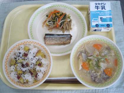 9月9日の給食 公開日 2021/09/09 更新日 2021/09/09 ☆給食☆ さつま芋ご飯 さんまの塩焼き 豆乳入り味噌汁 菊花和え 今日は「重陽の節句」です。「重陽の節句」とは、桃の節句や端午の節句などの5節句のひとつで、菊を使って長寿を願うことから「菊の節句」とも言われることもあるようです。給食では、菊の花びらを入れた菊花和えを作りました。 給食