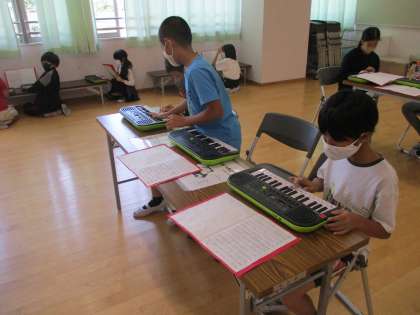 5年生 音楽 公開日 2021/09/13 更新日 2021/09/13 鶴一日記 音楽会の希望楽器の練習が始まりました。 クラスをAグループとBグループに分け、Aグループが希望楽器の練習をしているときはBグループはミニキーボードで旋律の確認をしています。 集中して取り組んでいました。 5年生は、休み時間にも練習しにきています。がんばれ! 全学年