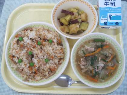 9月16日の給食 公開日 2021/09/16 更新日 2021/09/16 ☆給食☆ じゃこチャーハン 春雨スープ さつま芋の甘煮 今日のさつま芋の甘煮は、さつま芋とりんごとパイナップルの缶詰めを合わせて煮ています。煮汁にパイナップル缶のシロップも使いました。優しい甘味と仕上げのバターでおいしく仕上がりました。 給食