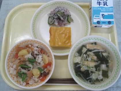 11月4日の給食 公開日 2021/11/04 更新日 2021/11/04 ☆給食☆ 五目栗おこわ 厚焼き卵 豆腐とえのきのスープ 大根のゆかり和え 今日は秋の味覚の代表のひとつ「栗」を使った給食です。栗は大きく分けて4種類あります。天津甘栗でおなじみの「中国栗」、マロングラッセなどに使われる「ヨーロッパ栗」、そして日本ではあまり見かけない「アメリカ栗」、そして、今日のおこわに使われているのが「日本栗」です。旬を味わって食べてください。 給食