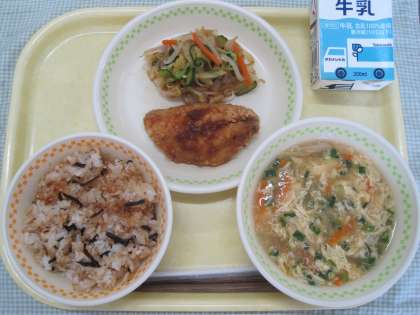 11月8日の給食 公開日 2021/11/08 更新日 2021/11/08 ☆給食☆ 昆布とじゃこのカミカミご飯 あじの南蛮漬け かき玉汁 白菜のおかか和え 今日は11月8日で、いい歯の日です。よく噛んで食べると、消化を助けたり、脳の働きが活発になったり、歯が丈夫になったりといいことがたくさんあります。今日はよく噛むことを意識して食べられるメニューにしました。 給食