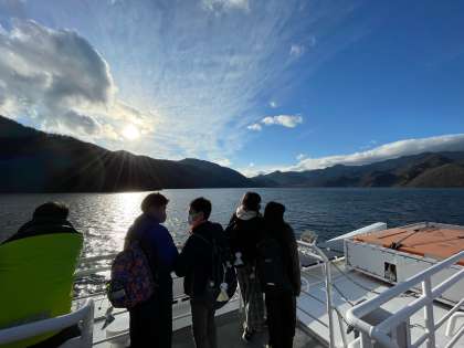 6年生 日光 遊覧船 公開日 2021/11/17 更新日 2021/11/17 鶴一日記 二日目の終わりには菖蒲ヶ浜から船に乗り中禅寺湖からの素晴らしい眺めを堪能しました。日光の雄大な山々に大興奮でした。 全学年
