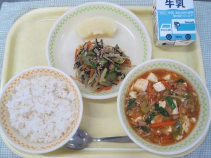 11月17日の給食 公開日 2021/11/17 更新日 2021/11/17 ☆給食☆ 麦ご飯 スンドゥブチゲ チョレギ風サラダ りんご スンドゥブチゲとは、韓国の豆腐を使った辛いスープの鍋料理のことです。韓国では、豆腐の他に貝類や肉・野菜をたっぷり入れて、唐辛子、コチュジャンで味付けするようです。給食では、豆腐と肉、野菜をたっぷり入れて作りました。 給食