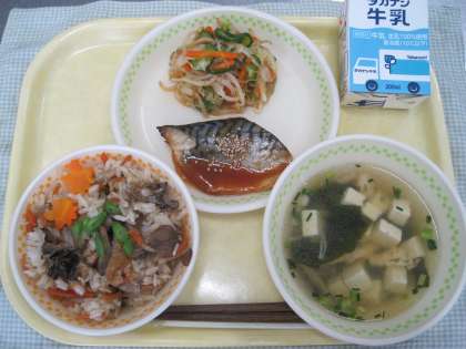 今日11月24日は、1124いい日本食で、「和食の日」です。日本人の伝統的な食文化を守り、受け継いでいくことを願って制定されました。今日は、和食の日にちなんで給食も和食の献立にしました。和食の魅力のひとつは「だし」です。今日のすまし汁のだしは、かつおの圧削りを使って丁寧にとりました。だしのうまみも感じながら食べてほしいでっす。だしのうまみは減塩にもつながっています。
