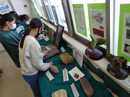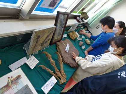 化石展示 その2 公開日 2021/11/29 更新日 2021/11/29 鶴一日記 アロサウルスの前足の化石はすごい迫力です。 エビの化石は小さくてかわいらしく、細かいところまで観察したり、触ったりすることが出来ます。 全学年