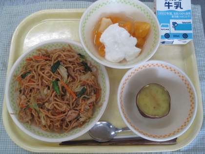 蒜山(ひるぜん)味噌焼きそば ふかし芋 フルーツヨーグルト