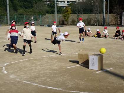 2年生 ボール当てゲーム 公開日 2021/12/04 更新日 2021/12/04 鶴一日記 2年生がボール当てゲームをしていました。ダンボールで作った的にボールを当てて倒すと1点になります。相手チームの守りを突破するには、素早く走ることだけでなく、味方にパスをして空いている場所から的を狙うことも大切です。 全学年