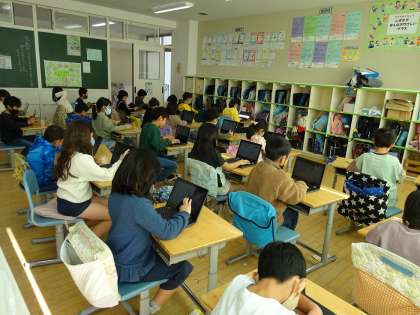 1枚めのクラスはクロムブックで、タイピングの練習をしていました。ローマ字入力ができたら便利ですね。