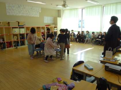 2枚めのクラスは学期末恒例のお楽しみ会です。椅子取りゲームでしょうか?