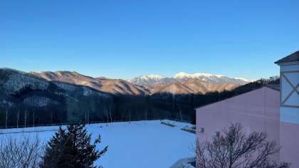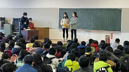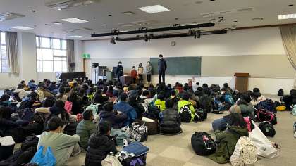 多目的ホールで退舎式を行いました。お世話になった施設の方にあいさつをしました。このあと、スキー場に移動してスキー教室2日目です。