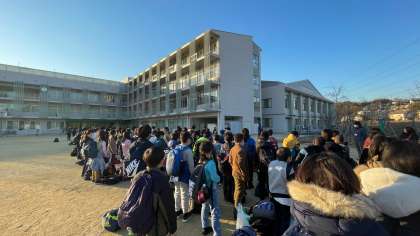 土曜日にもかかわらず、副校長先生、他の学年の先生、専科の先生方がお迎えにきてくれていました。