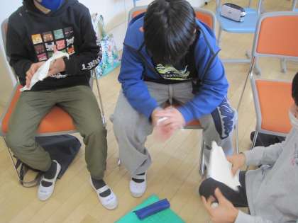 紙を使っていろいろな音をだして音楽づくりをします。