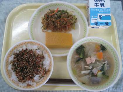 2月8日の給食 公開日 2022/02/08 更新日 2022/02/08 ☆給食☆ ご飯(めかぶのふりかけ) 厚焼き卵 石狩汁 切干大根のソース炒め 今日は北海道石狩地方の郷土料理「石狩汁」を作りました。もともと石狩汁は、漁師さんがたちが食べる鍋料理で、ぶつ切りにした鮭や季節の野菜、豆腐などを味噌で味付けして作られていたと言われています。給食では、食べやすいように小さい角切りに切った鮭を使いました。仕上げにバターを入れてこくを出しています。 給食