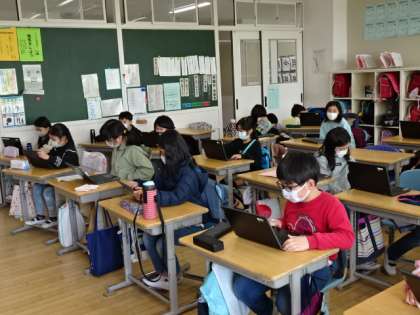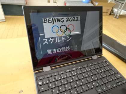 3年生がクロムブックを使って冬季オリンピックについて調べ、スライドにまとめていました。このあと発表会をするそうです。一人1種目か2種目調べていましたが、このクラスではスノーボード9名、フィギュアスケート5名、バイアスロン5名、ボブスレー3名、スケルトン3名、フリースタイル、カーリング、スキージャンプ、ノルディック複合、リュージュ、アイスホッケー、フリースタイルスキーが各1名でした。選手の皆さんに力を出し切って頑張ってほしいですね。