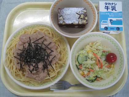 ツナと大根の和風スパゲティ コールスローサラダ ミニトマト