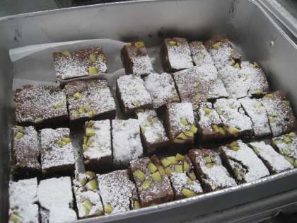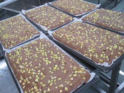 今日はさつま芋を入れたブラウニーを焼きました。ブラウニーにさつま芋が入ると、見た目や切り口の断面のきれいで美味しそうに仕上がることと、栄養面では食物繊維をとることが出来ます。ブラウニーは甘さ控えめに作り、最後に粉糖をかけました。