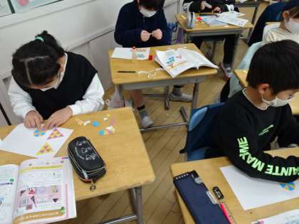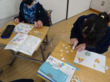 3年生 算数 三角形を調べよう 公開日 2022/02/17 更新日 2022/02/17 鶴一日記 三年生は二等辺三角形や正三角形の特徴を調べてきました。まとめとして、その特性を生かしてすきまなく敷き詰める学習をしていました。 全学年