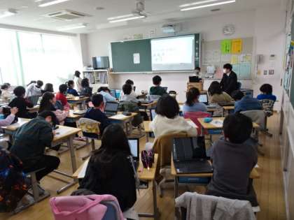 冬季オリンピックを調べて作ったスライドは、多くの保護者の方にお見せしたいということでたくさんの児童が発表するために、友達の発表の感想は書いて残し、次の時間に交流することにしました。