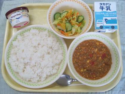 ごぼう入りキーマカレー フレンチサラダ アイスクリーム