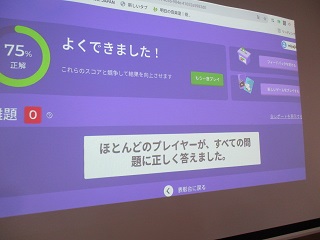 問題を答えるごとに自分のランキングがスクリーンに表示されてわかるようになっています。