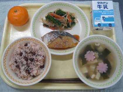 今年度最後の給食は、6年生の卒業をお祝いしてお赤飯にしました。6年生にとっては今日が鶴一小最後の給食です。鶴一小の給食が、楽しい学校生活のひとつとして思い出に残ってもらえると嬉しいです。中学生になると、給食からお弁当になり、自分で食事を選ぶ機会も増えてくると思いますが、食事は好きなものを食べるのだけではなく、色々なものをバランスよく食べることが大切です。6年生のみなさん、ご卒業おめでとうございます。