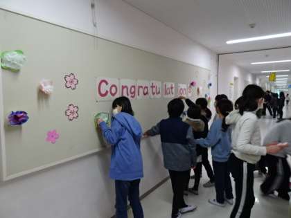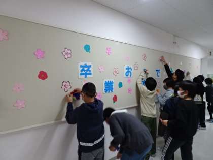 卒業式に向けての準備 公開日 2022/03/23 更新日 2022/03/23 鶴一日記 5年生が卒業式に向けて、体育館や廊下をきれいにしたり、祝電を掲示したり、飾りをつけたりして準備をしていました。明日はいよいよ卒業式。おめでとうの気持ちと寂しい気持ちでいっぱいになりますね。 全学年