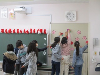 新6年生が、1年生の入学式のために準備をしてくれました。