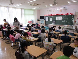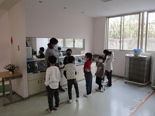 1年生は、水道の使い方や、トイレの使い方を担任の先生に教えてもらっていました。