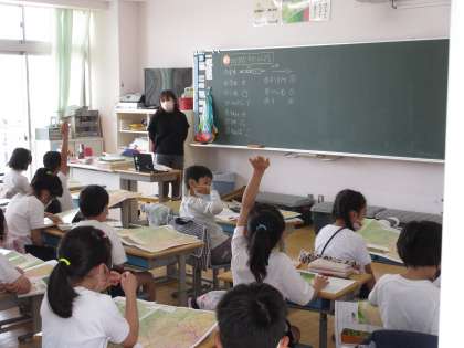 3年生は、地図を使って学習をしていました。