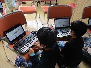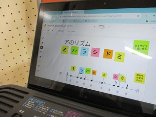 5年生 音楽 公開日 2022/05/02 更新日 2022/05/02 鶴一日記 5年生は、日本の音階を使って旋律づくりをしていました。 ミニキーボードで、音を確認しながらできた旋律をジャムボードに入力していきました。 全学年