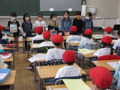 2年生が1年生に学校探検の招待状を渡しに来てくれました。楽しみですね!!