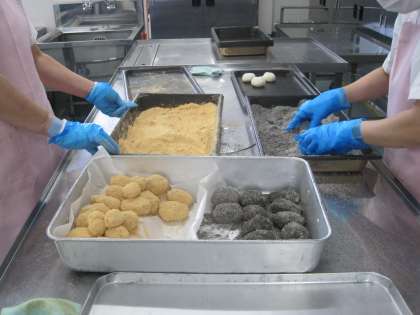 9月22日の給食 公開日 2022/09/22 更新日 2022/09/22 ☆給食☆ 〜お彼岸の行事食〜 2色おはぎ(きなこ・ごま) 焼きししゃも 野菜の塩昆布和え 豆腐のすまし汁 牛乳 1400個のおはぎを給食室で作りました。 子どもにも大人にも大人気でした。 給食