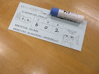 全校児童にはあらかじめ宝くじが配られ、その宝くじに0〜9までの数字を1回使って、三桁の数字の組み合わせを記入します。