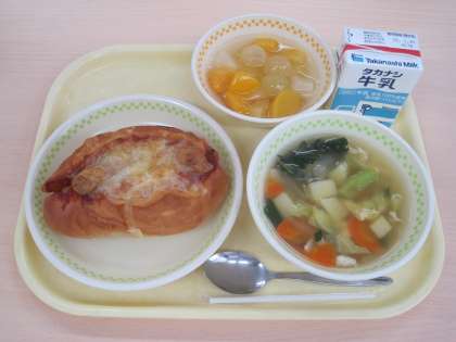 1月19日の給食 公開日 2023/01/19 更新日 2023/01/19 ☆給食☆ ピザドック 野菜スープ フルーツポンチ 牛乳 ピザドックは、ピザとホットドックを組み合わせたパンです。 「ピザドックもフルーツポンチも美味しかった」という声をたくさんもらいました。 給食