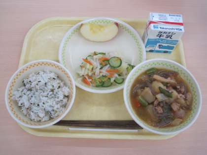 2月2日の給食 公開日 2023/02/02 更新日 2023/02/02 ☆給食☆ 菜飯 鶏肉じゃが 野菜の甘酢和え りんご 牛乳 今日は、鶏肉を使って肉じゃがを作りました。 鶏肉のうまみがでたおいしい肉じゃがになって好評でした。 給食