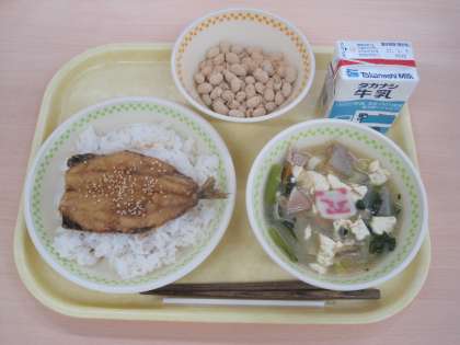 節分にちなんで、いわしと大豆を使った献立です。